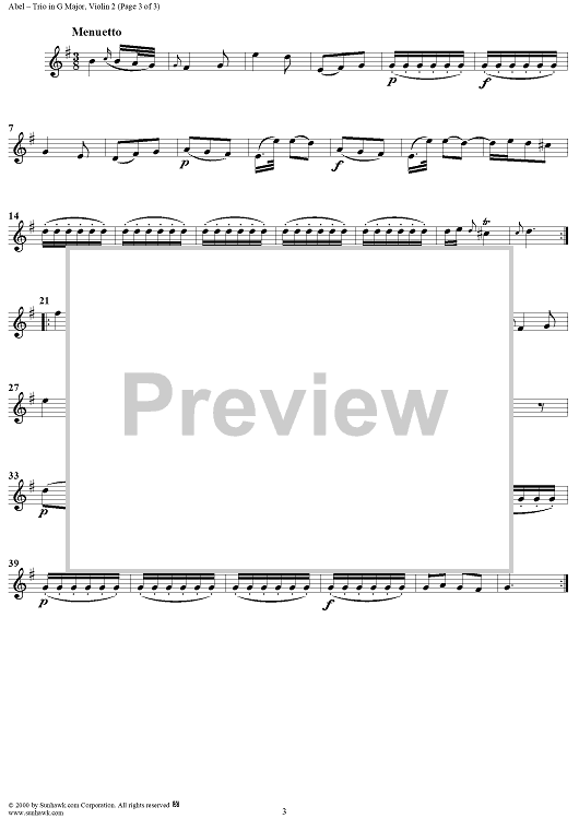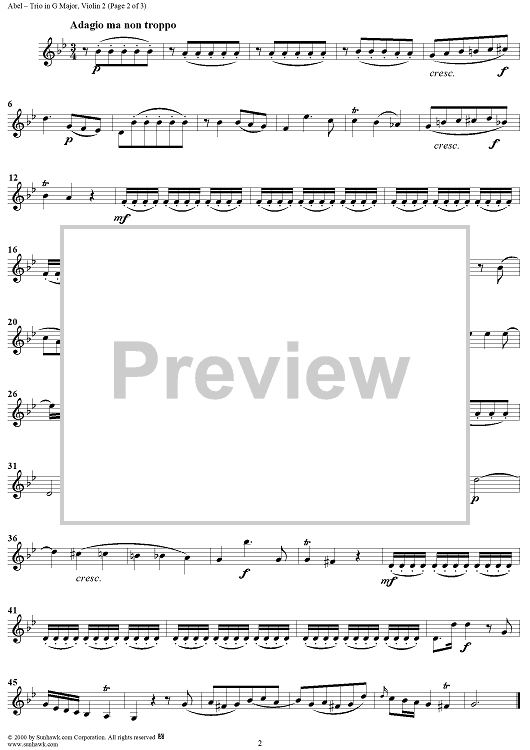 Digital Sheet Music for Trio in G Major Op. 3, No. 1 - Violin 2 by Carl Friedrich Abel scored for String Trio; id:235531