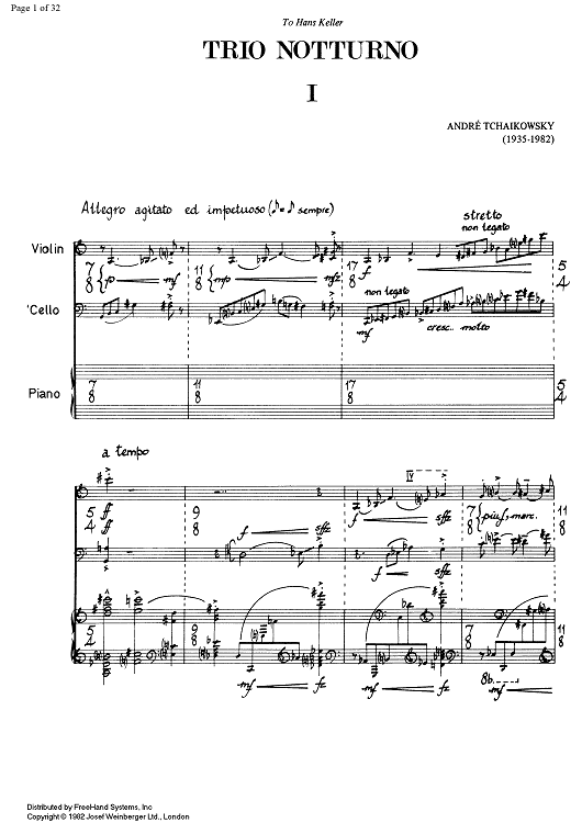 "Trio Notturno - Score" Sheet Music by André Tchaikowsky