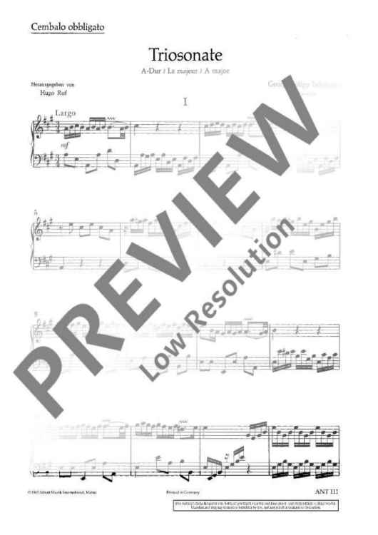 "Trio sonata A Major" Sheet Music by Georg Philipp Telemann