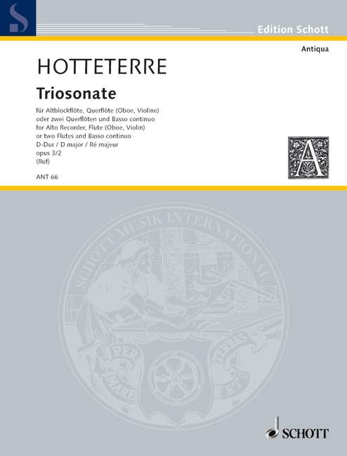 Digital Sheet Music for Trio Sonata D Major - Set of Parts by Jacques Martin Hotteterre scored for Treble Recorder (flute), Violin (flute, Oboe) And Basso Continuo; id:471048