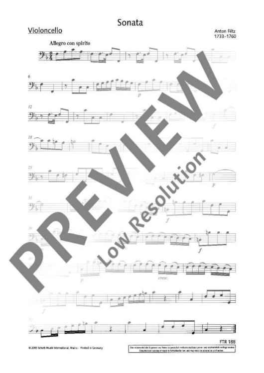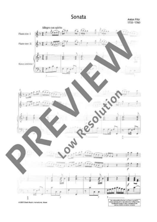 A cellist in the Mannheim court orchestra, Anton Filtz (1733-1760) wrote two well-known flute concertos and numerous chamber music works apart from 40 symphonies. Schubert wrote about him in his 'Ästhetik der Tonkunst' (1784): 'Filtz is one of the older composers of the Mannheim orchestra; his spirit and his works have made him immortal long since'. The Trio Sonata in F major is the fifth of the 'Six Sonatas' published in London around 1775, a brilliant, early classical work full of beautiful musical ideas. Suited for music teaching, the 'Jugend musiziert' competition, and concert performances.