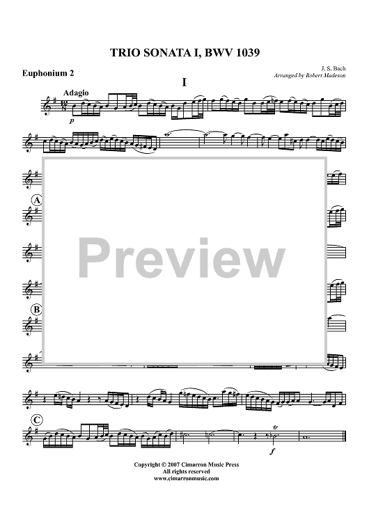 Digital Sheet Music for Trio Sonata I, BWV 1039 - Euphonium 2 BC/TC by Robert Madeson, Johann Sebastian Bach scored for Euphonium Duet/Piano; id:361148