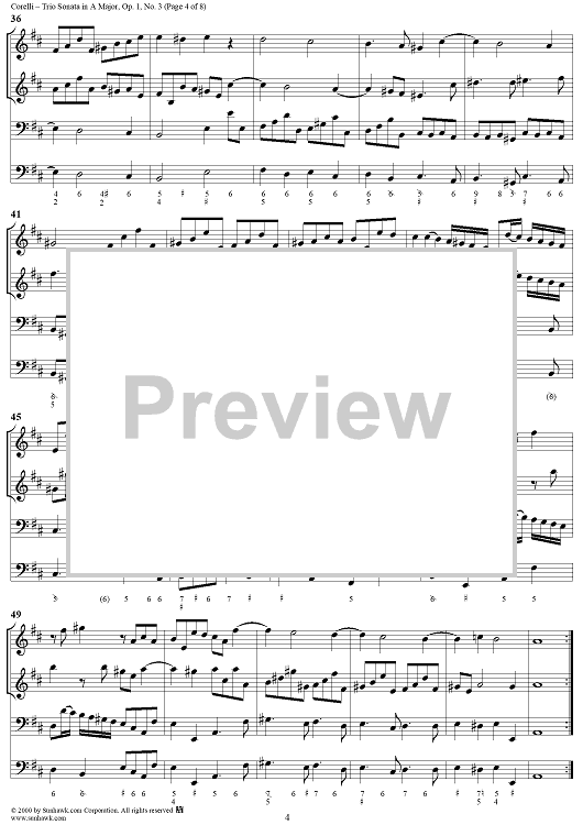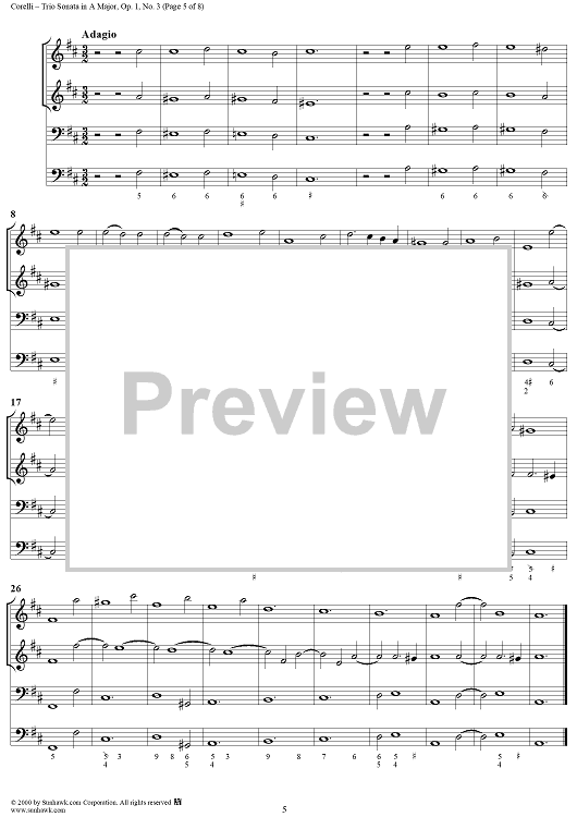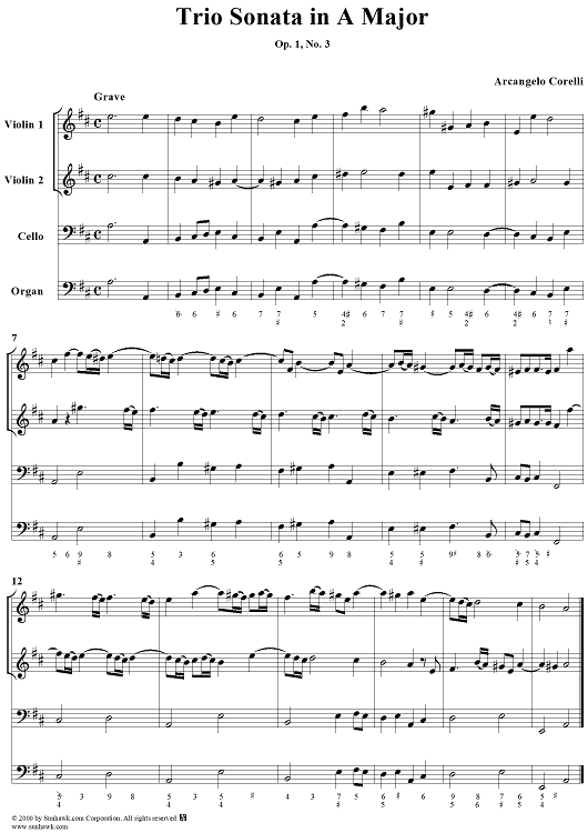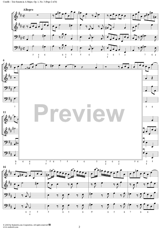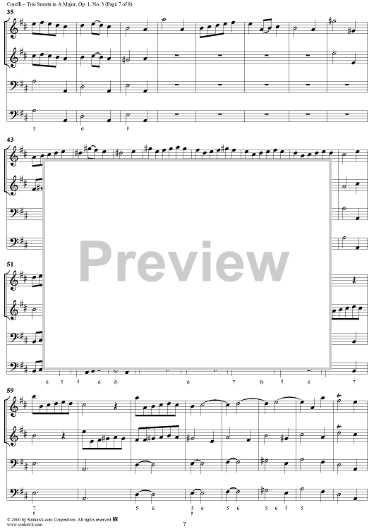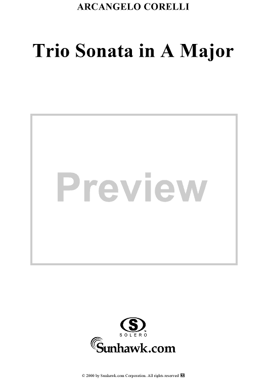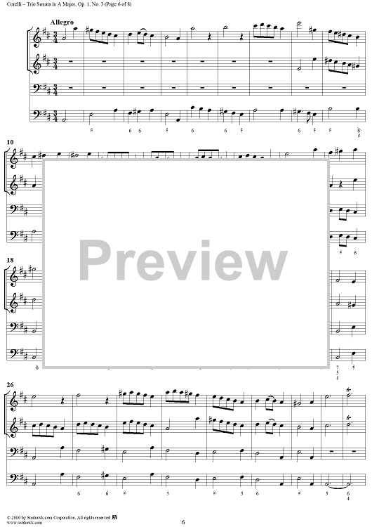 Digital Sheet Music for Trio Sonata in A major, op. 1, no. 3 by Arcangelo Corelli scored for Trio Sonata; id:240816