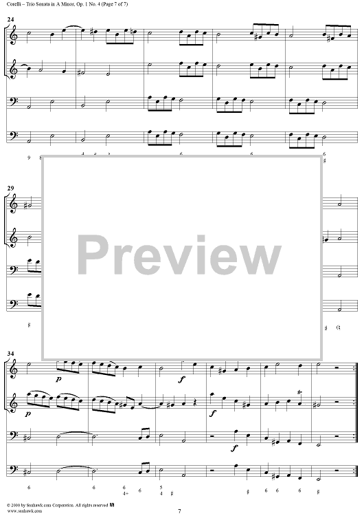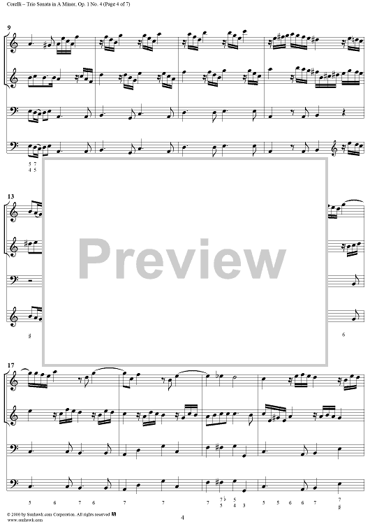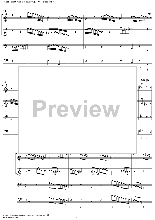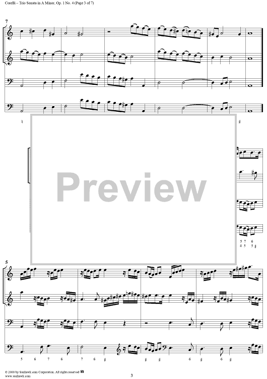 Digital Sheet Music for Trio Sonata in A Minor, op. 1, no. 4 by Arcangelo Corelli scored for Trio Sonata; id:240817
