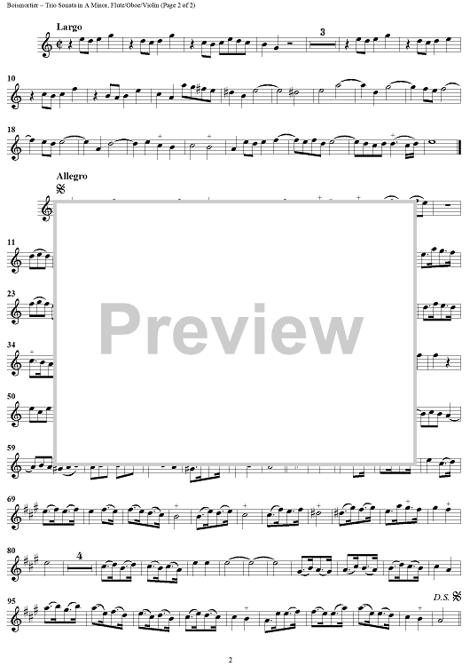 Digital Sheet Music for Trio Sonata in A Minor Op. 37 No. 5 - Flute/Oboe/Violin by Joseph Bodin de Boismortier scored for Trio Sonata; id:274616