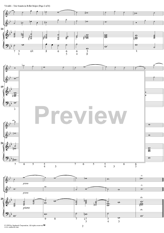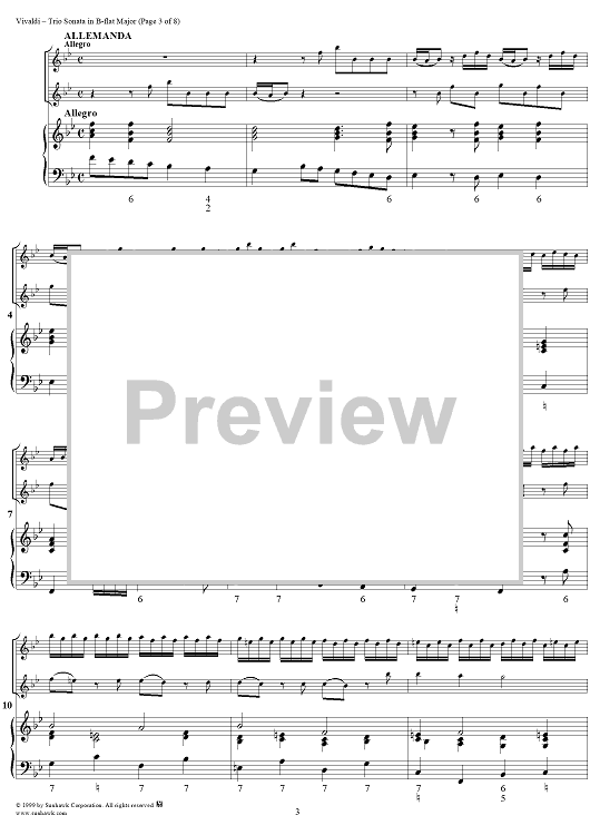 Digital Sheet Music for Trio Sonata in B-flat major, Op. 1/10 RV 78 by Antonio Vivaldi scored for Trio Sonata; id:264154