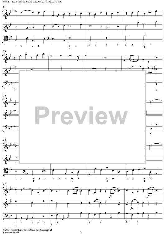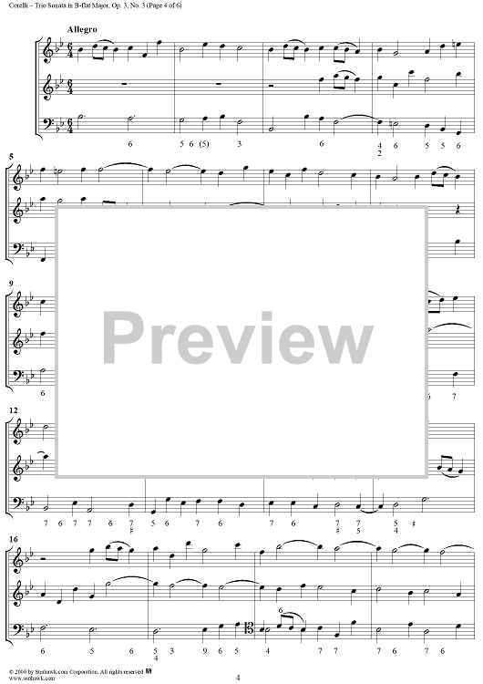 Digital Sheet Music for Trio Sonata in B-Flat Major, Op. 3, No. 3 - Score by Arcangelo Corelli scored for Trio Sonata; id:240803