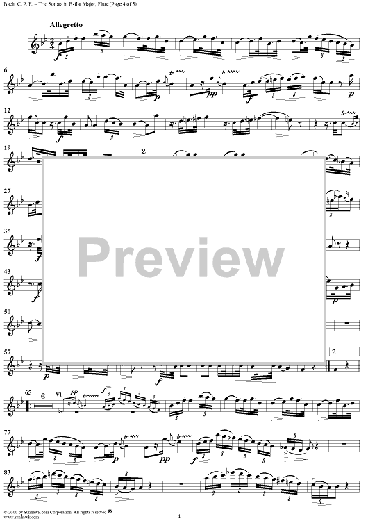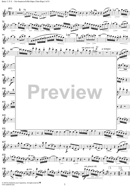 Digital Sheet Music for Trio Sonata in B-Flat Major, Wq161/1 - Flute by Carl Philipp Emanuel Bach scored for Trio Sonata; id:240980