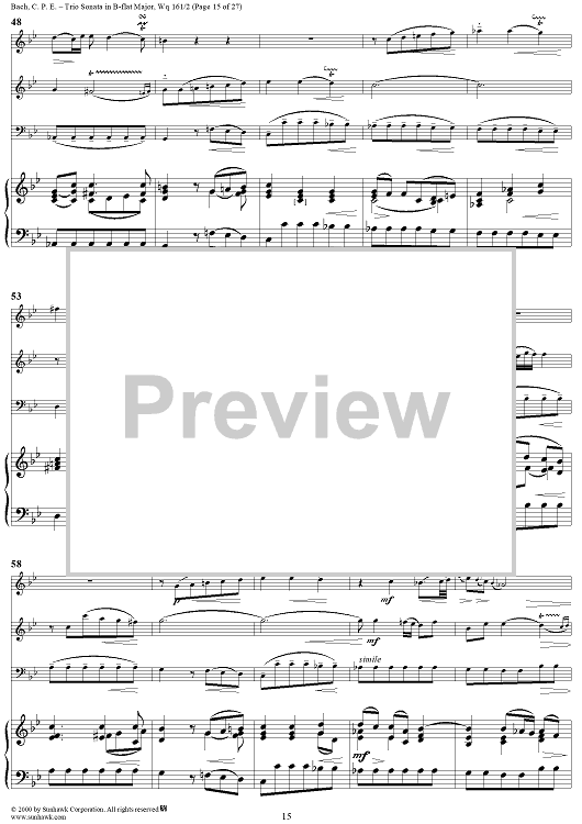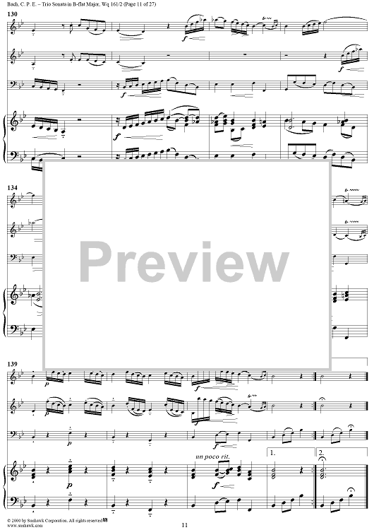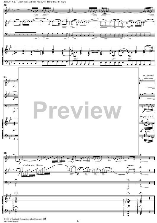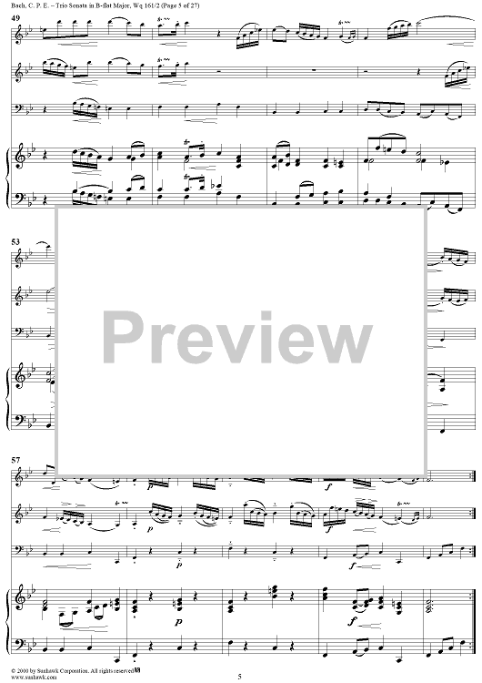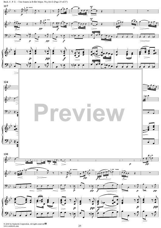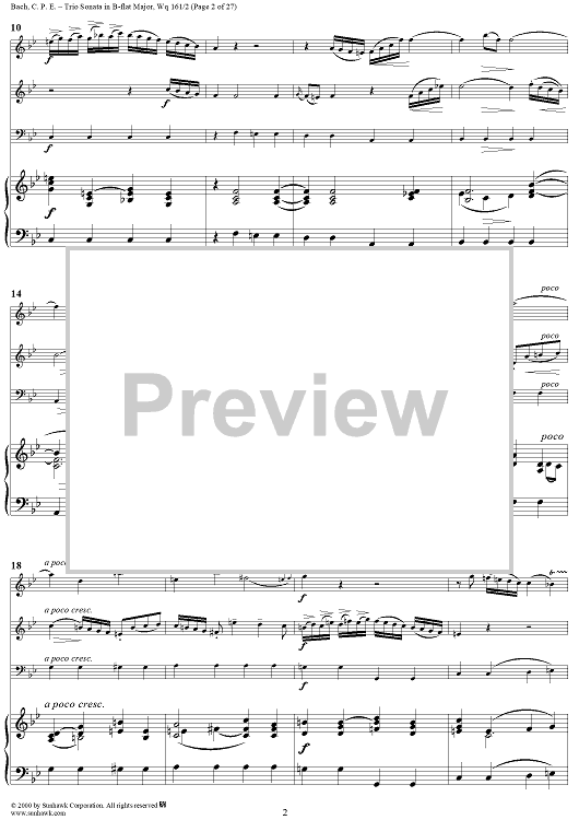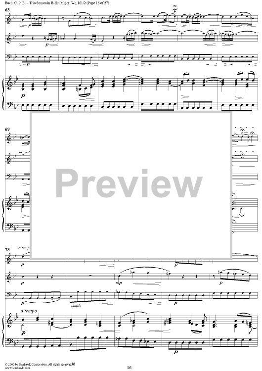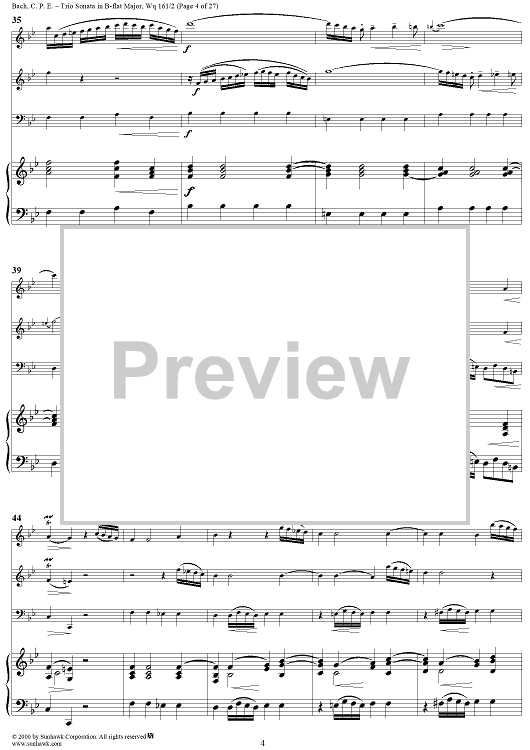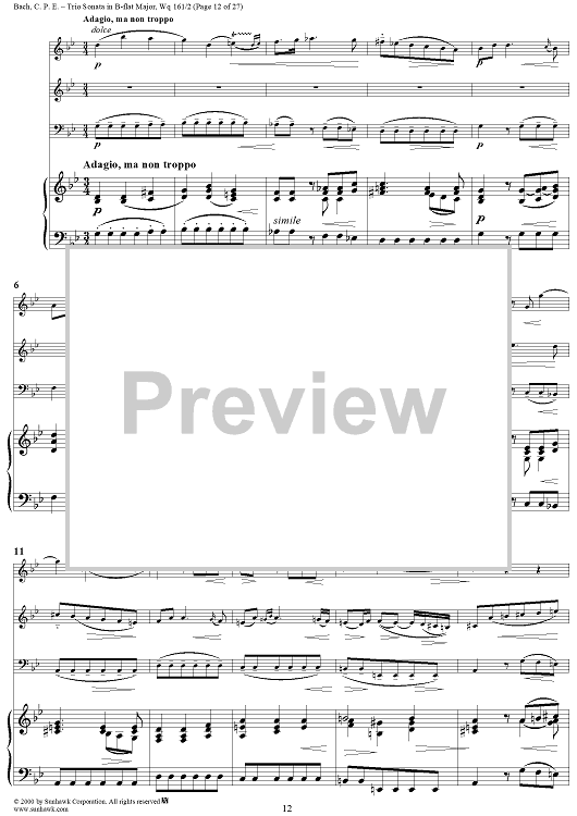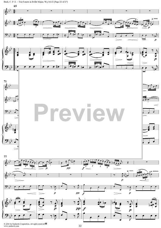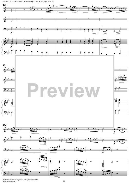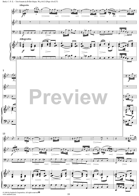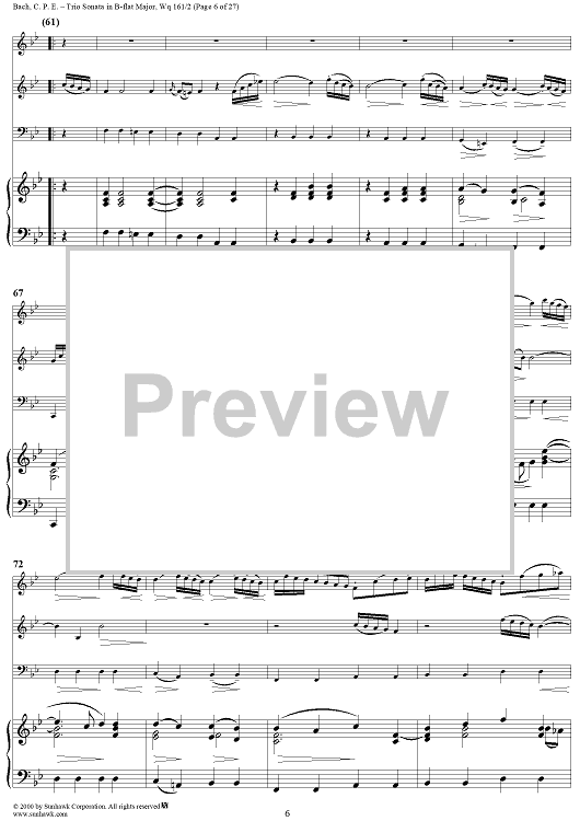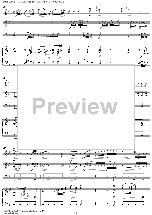 Digital Sheet Music for Trio Sonata in B-Flat Major, Wq161/1 - Piano Score by Carl Philipp Emanuel Bach scored for Trio Sonata; id:240983