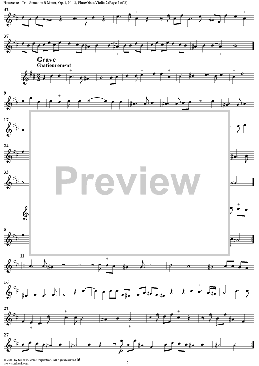 "Trio Sonata in B Minor, Op. 3 No. 3 - Flute/Oboe/Violin 2" Sheet Music by Jacques Martin Hotteterre