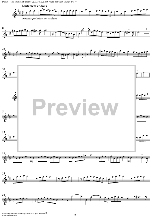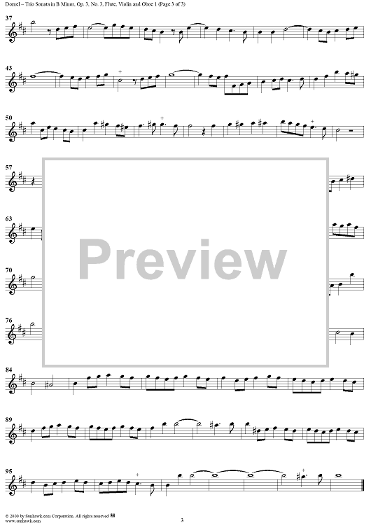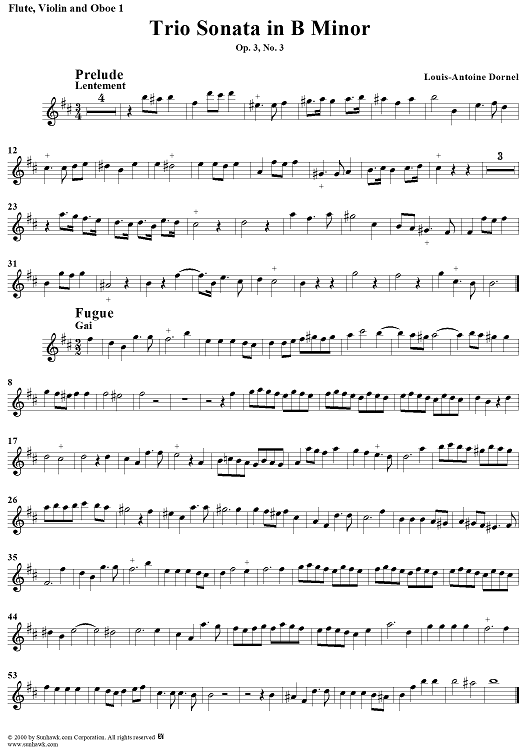 Digital Sheet Music for Trio Sonata in B Minor Op. 3, No. 3 - Flute/Violin/Oboe 1 by Louis-Antoine Dornel scored for Trio Sonata; id:271435