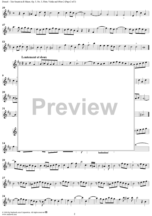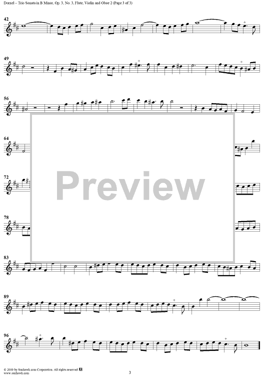 Digital Sheet Music for Trio Sonata in B Minor Op. 3, No. 3 - Flute/Violin/Oboe 2 by Louis-Antoine Dornel scored for Trio Sonata; id:271434