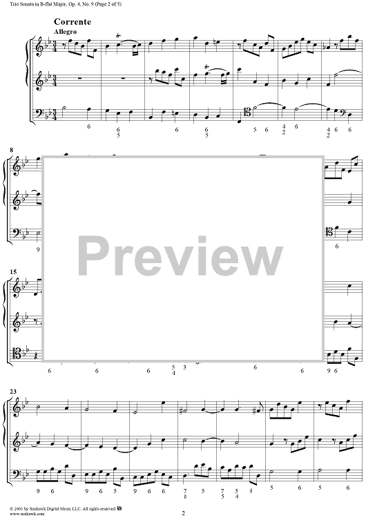 Digital Sheet Music for Trio Sonata in Bb Major - Op. 4, No. 9 - Score by Arcangelo Corelli scored for Trio Sonata; id:272607