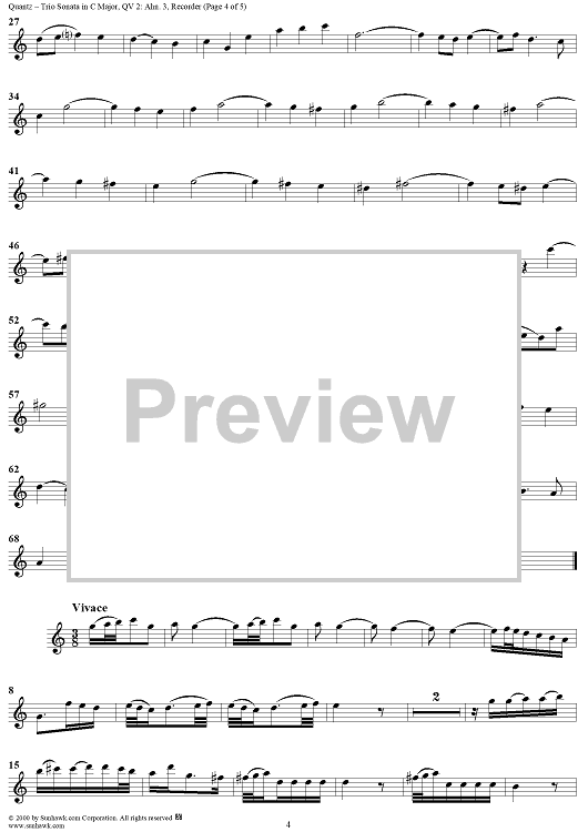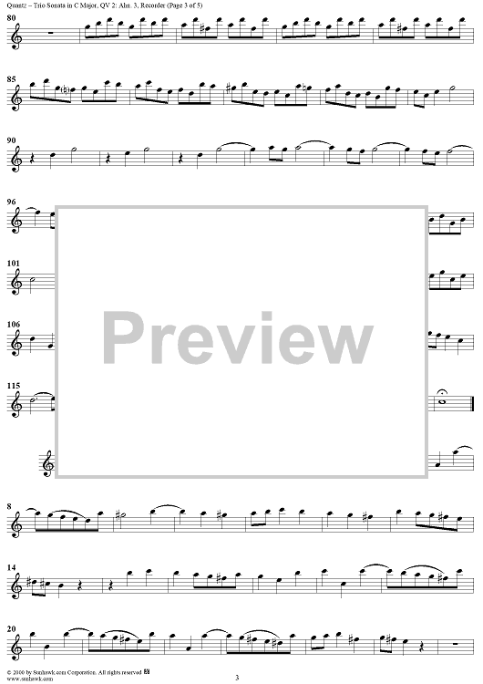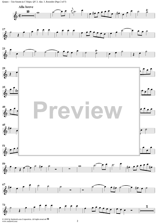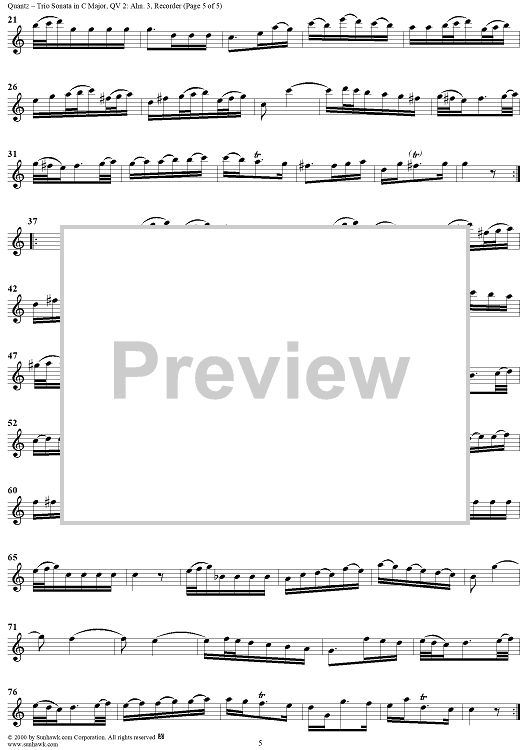 "Trio Sonata in C Major QV 2: Ahn. 3 - Recorder" Sheet Music by Johann Joachim Quantz