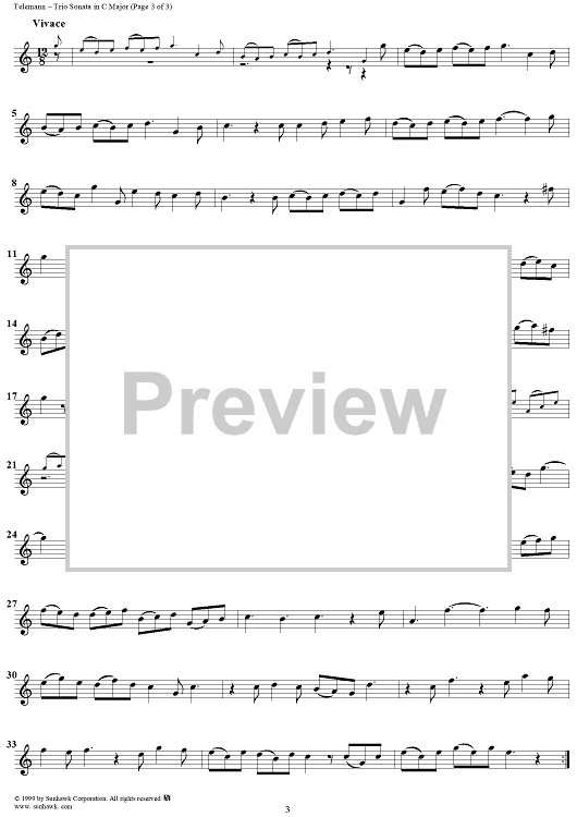 Digital Sheet Music for Trio Sonata in C Major - Violin 2 or Flute 2 by Georg Philipp Telemann scored for Trio Sonata; id:260008