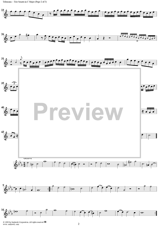 "Trio Sonata in C Major - Violin 2 or Flute 2" Sheet Music by Georg Philipp Telemann
