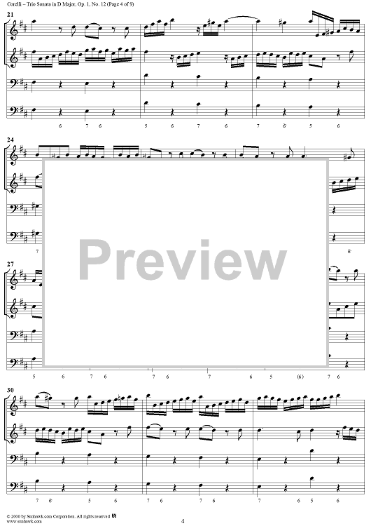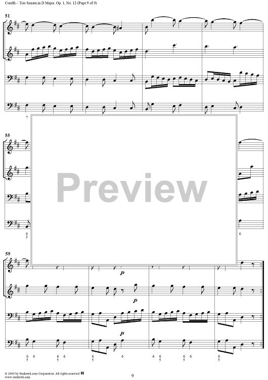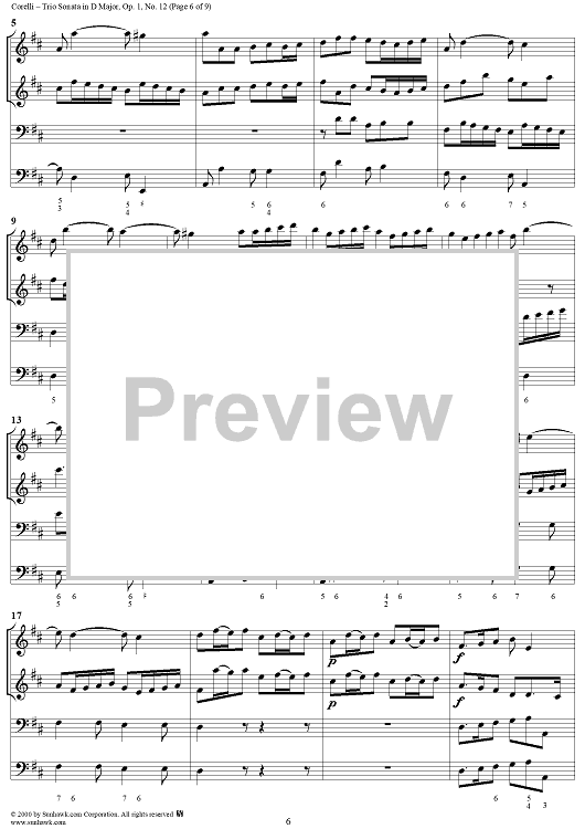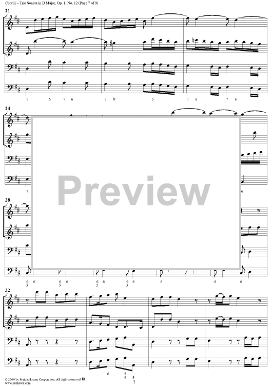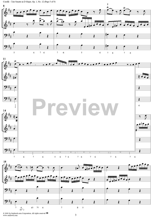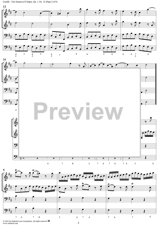 Digital Sheet Music for Trio Sonata in D Major, op. 1, no. 12 by Arcangelo Corelli scored for Trio Sonata; id:240821