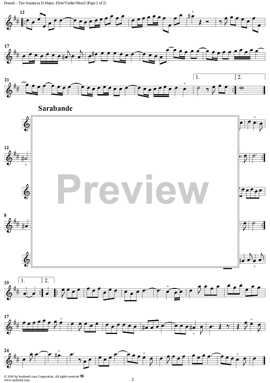 "Trio Sonata in D Major Op. 3, No. 2 - Flute/Violin/Oboe 2" Sheet Music by Louis-Antoine Dornel