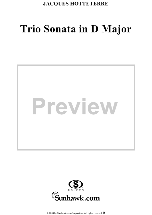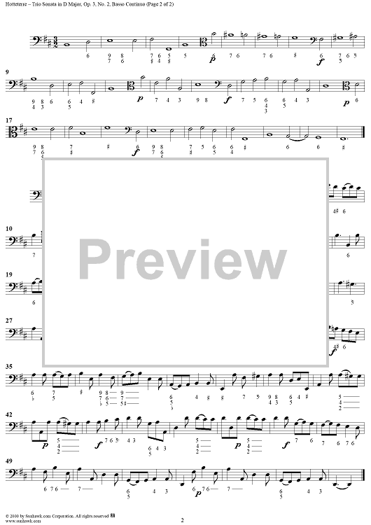 "Trio Sonata in D Major, Op. 3, No. 2 - Viola da gamba" Sheet Music by Jacques Martin Hotteterre
