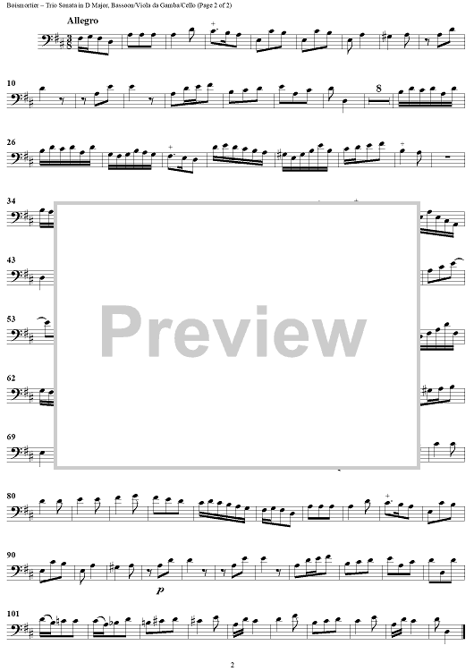 Digital Sheet Music for Trio Sonata in D Major Op. 37 No. 3 - Bassoon/Viola da Gamba/Cello by Joseph Bodin de Boismortier scored for Trio Sonata; id:274608