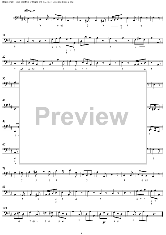 "Trio Sonata in D Major, Op. 37, No. 3 - Continuo" Sheet Music by Joseph Bodin de Boismortier