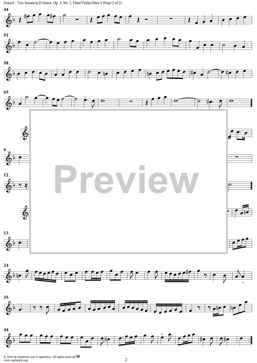 Digital Sheet Music for Trio Sonata in D Minor - Op. 3, No. 1 - Flute/Oboe/Violin 2 by Louis-Antoine Dornel scored for Trio Sonata; id:271427