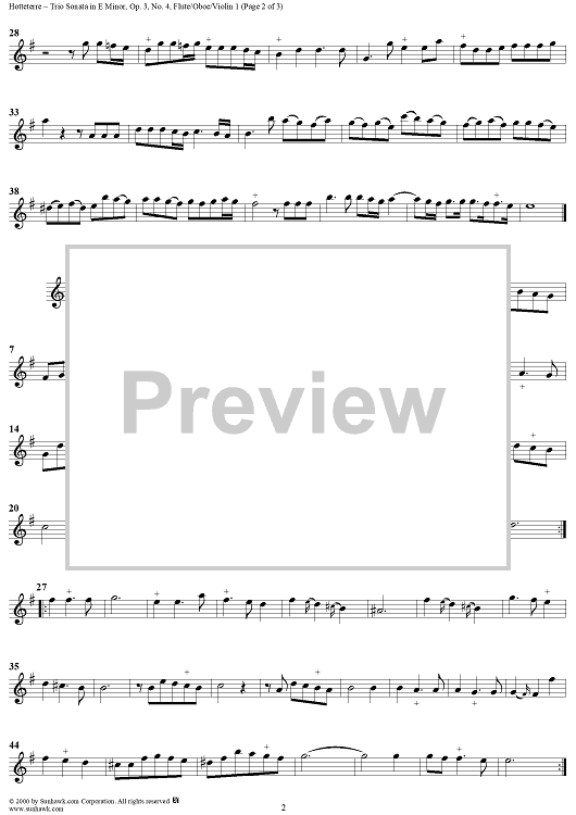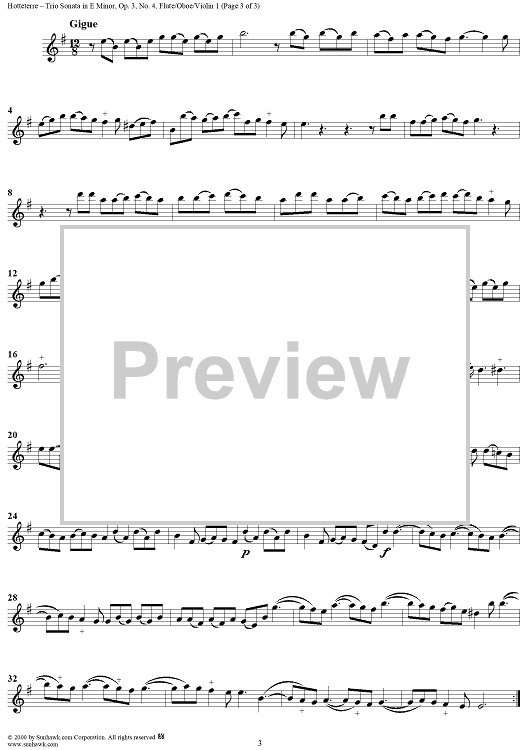 Digital Sheet Music for Trio Sonata in E Minor, Op. 3, No. 4 - Flute/Oboe/Violin 1 by Jacques Martin Hotteterre scored for Trio Sonata; id:203472