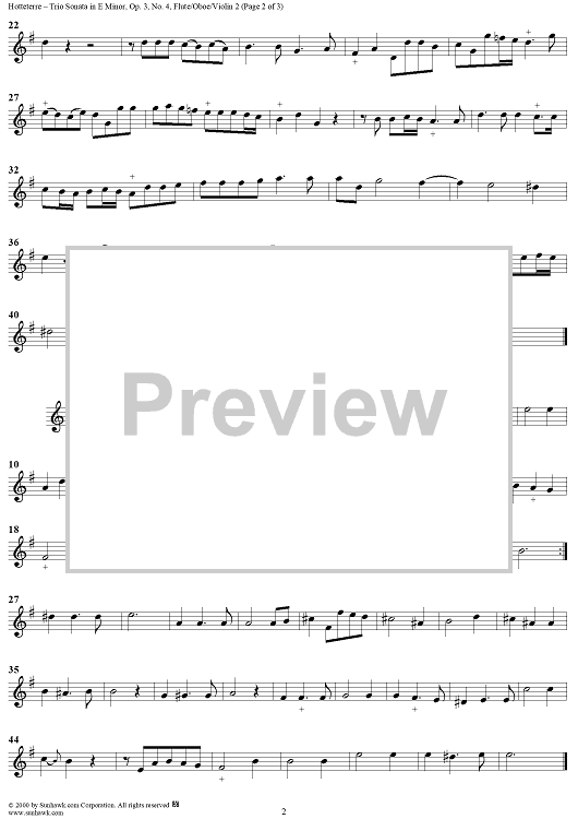 Digital Sheet Music for Trio Sonata in E Minor, Op. 3, No. 4 - Flute/Oboe/Violin 2 by Jacques Martin Hotteterre scored for Trio Sonata; id:203473