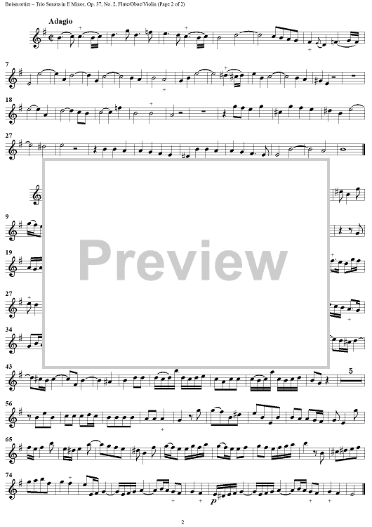 Digital Sheet Music for Trio Sonata in E Minor Op. 37 No. 2 - Flute/Oboe/Violin by Joseph Bodin de Boismortier scored for Trio Sonata; id:274604