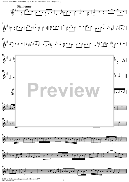 Digital Sheet Music for Trio Sonata in G Major Op. 3, No. 4 - Flute/Violin/Oboe 2 by Louis-Antoine Dornel scored for Trio Sonata; id:271454