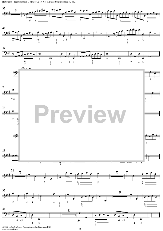 Digital Sheet Music for Trio Sonata in G Major, Op. 3 No. 6 - Basso Continuo by Jacques Martin Hotteterre scored for Trio Sonata; id:266290