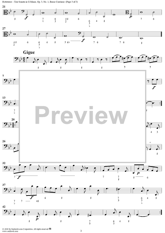 Digital Sheet Music for Trio Sonata in G Minor, Op. 3 No. 1 - Basso Continuo by Jacques Martin Hotteterre scored for Trio Sonata; id:266280