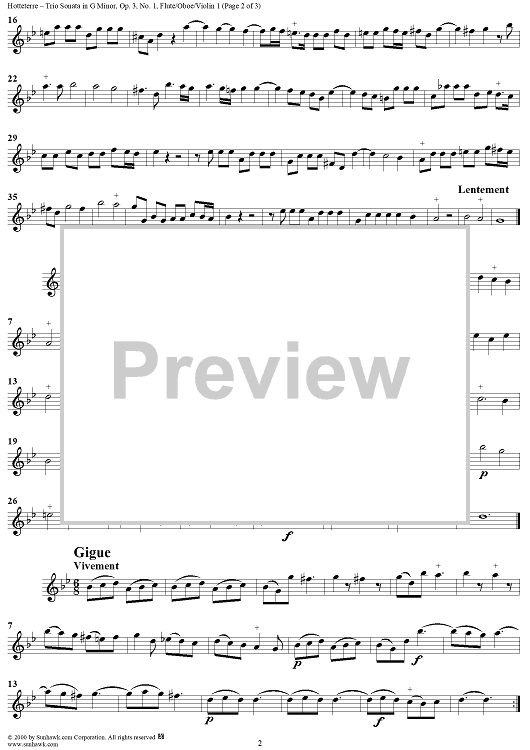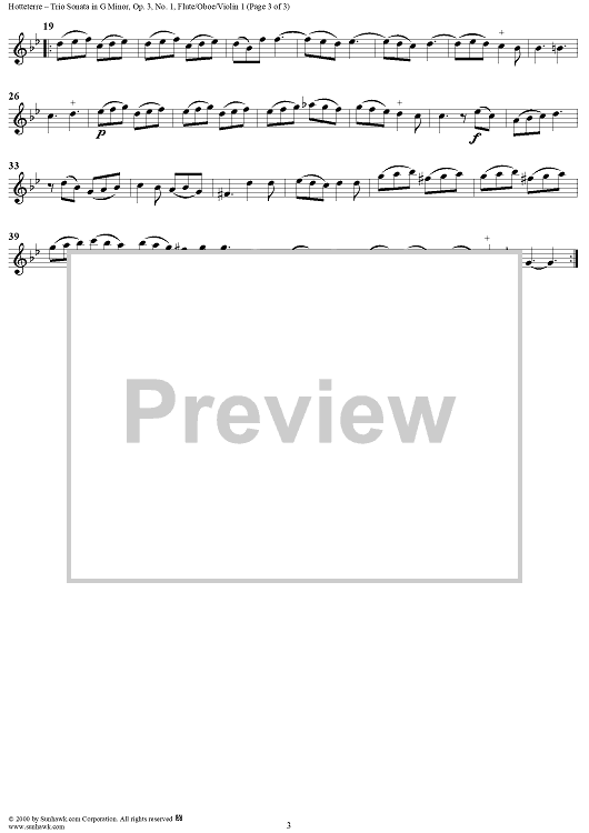 Digital Sheet Music for Trio Sonata in G Minor, Op. 3, No. 1 - Flute/Oboe/Violin 1 by Jacques Martin Hotteterre scored for Trio Sonata; id:266279