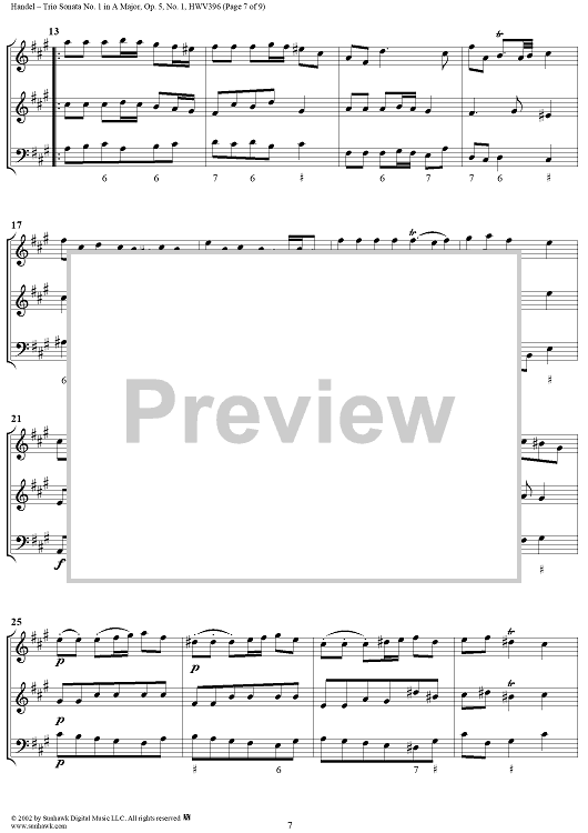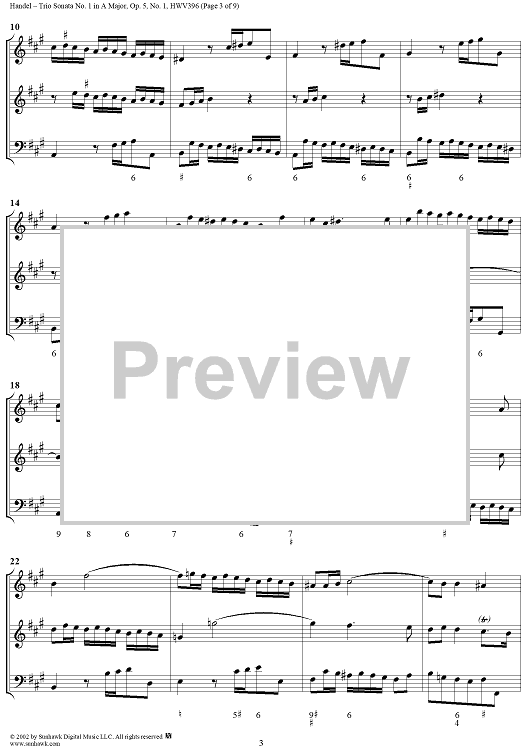 "Trio Sonata no. 1 in A major - op. 5/1 (HWV396)" Sheet Music by George Frideric Handel