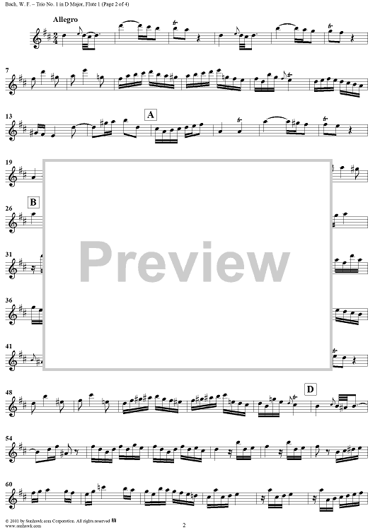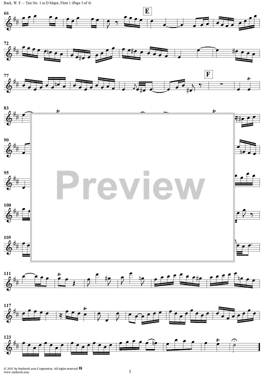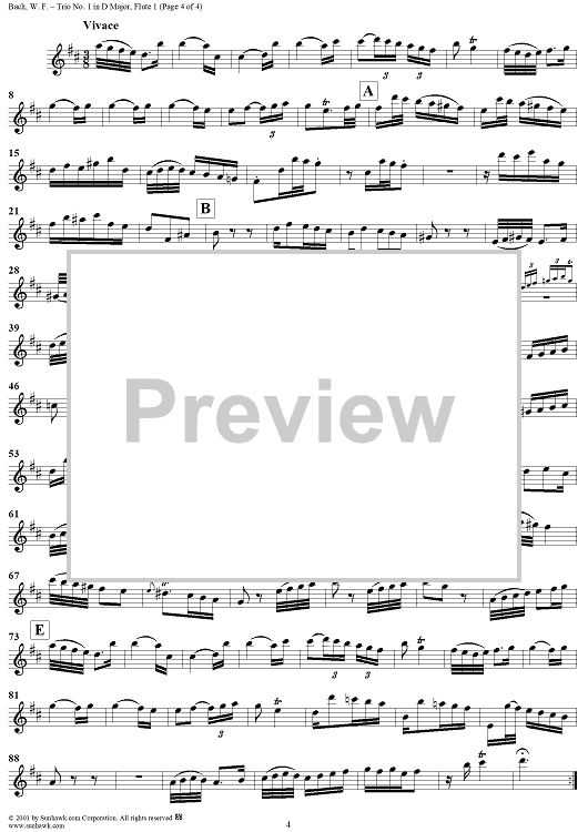 "Trio Sonata No. 1 in D Major - Flute 1" Sheet Music by Wilhelm Friedemann Bach