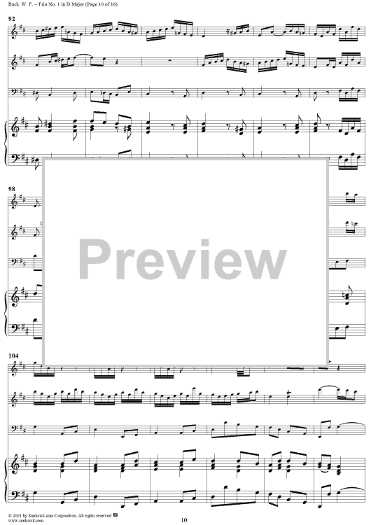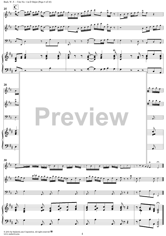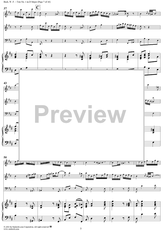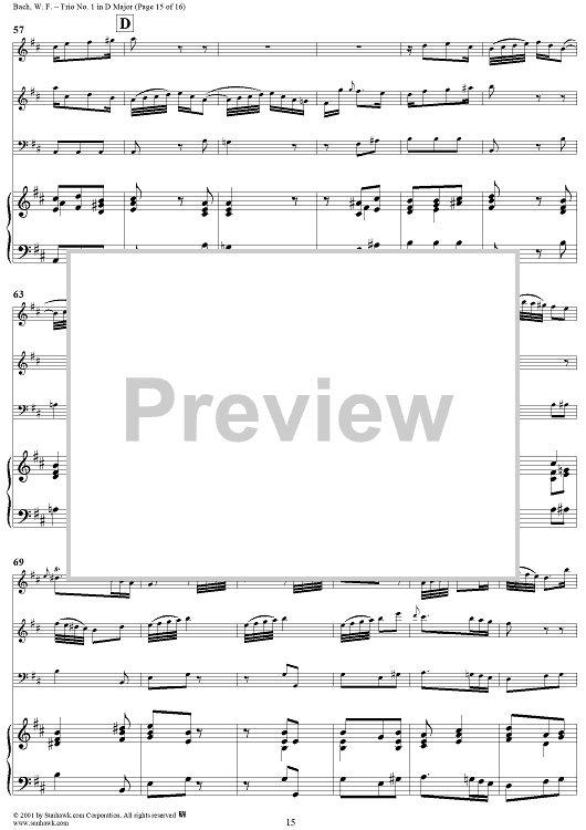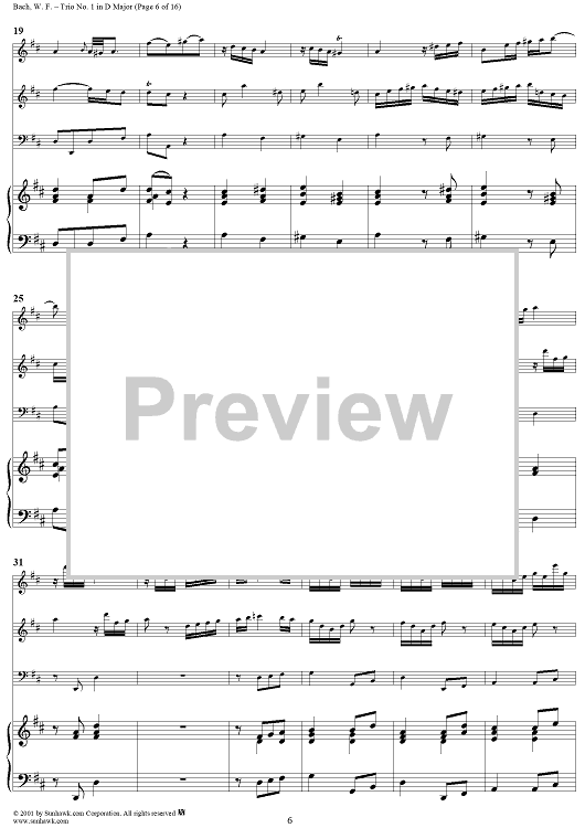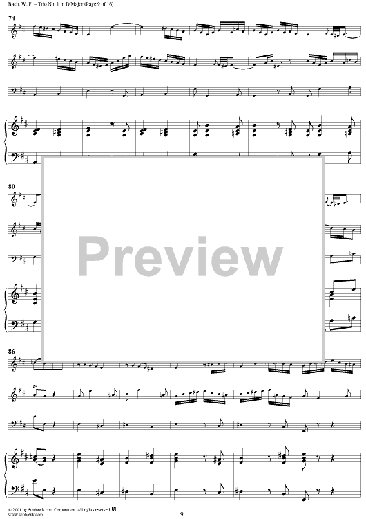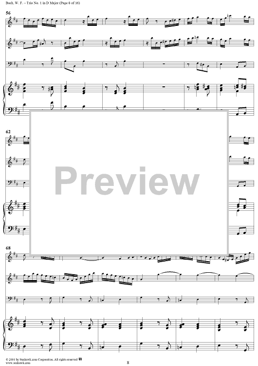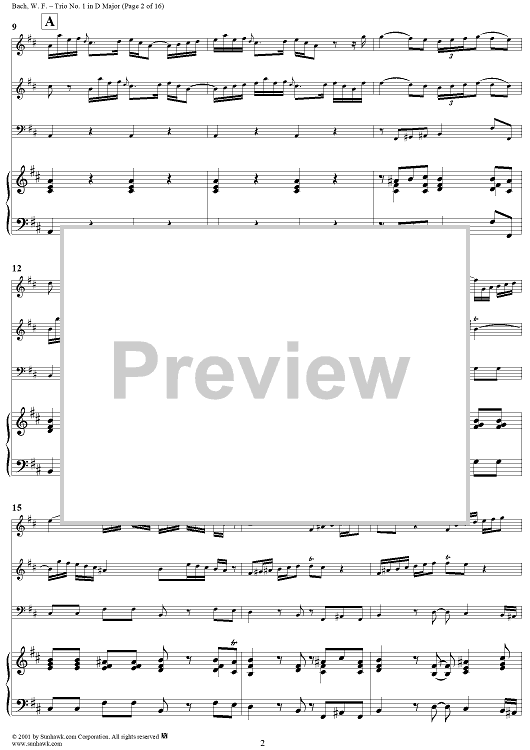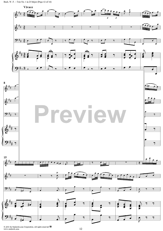 "Trio Sonata No. 1 in D Major - Piano Score" Sheet Music by Wilhelm Friedemann Bach