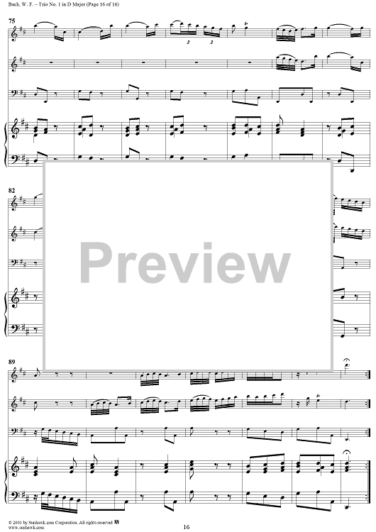 Digital Sheet Music for Trio Sonata No. 1 in D Major - Piano Score by Wilhelm Friedemann Bach scored for Two Flutes/Cello; id:273536