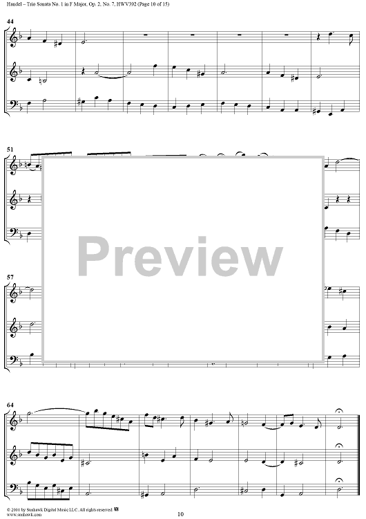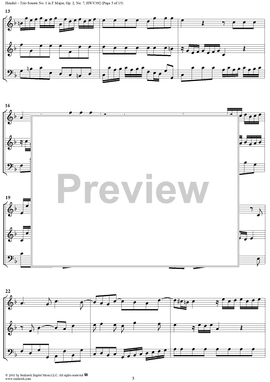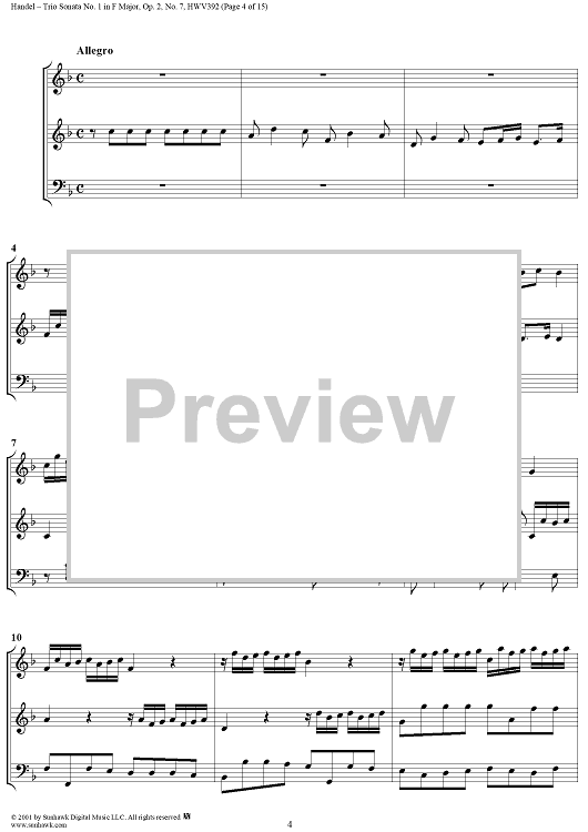 "Trio Sonata no. 1 in F major - op. 2, no. 7 (HWV392)" Sheet Music by George Frideric Handel