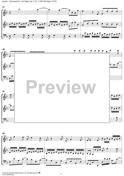 Digital Sheet Music for Trio Sonata no. 1 in F major - op. 2, no. 7 (HWV392) by George Frideric Handel scored for Trio Sonata; id:267649