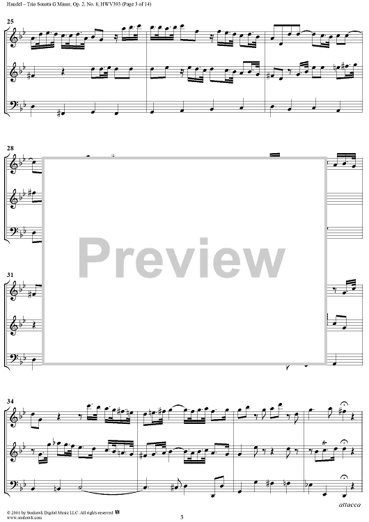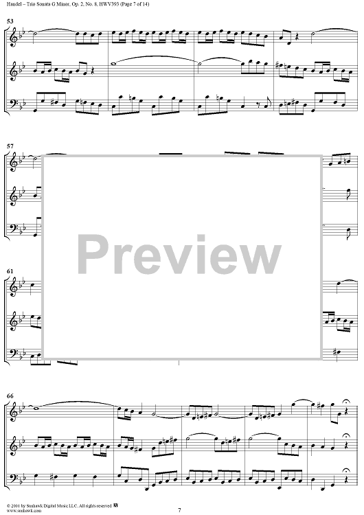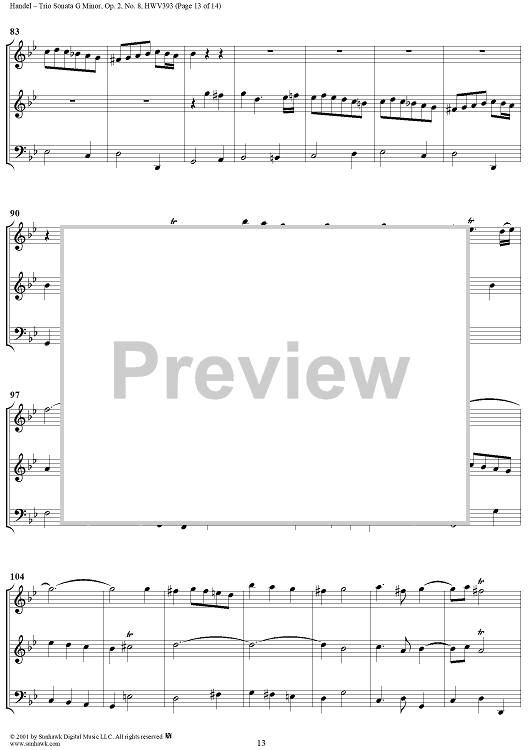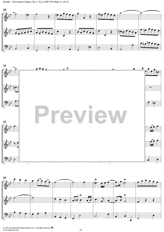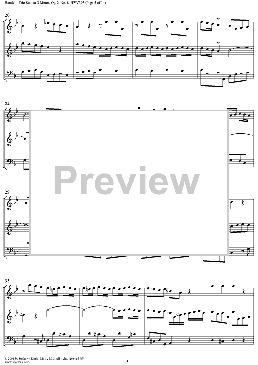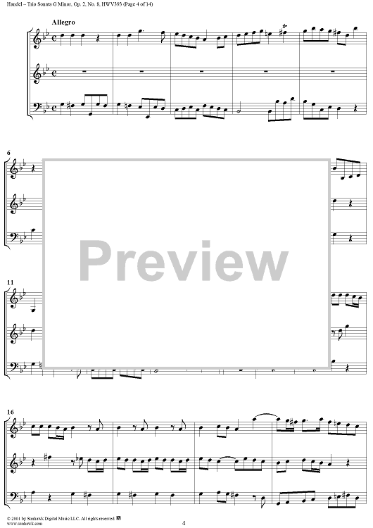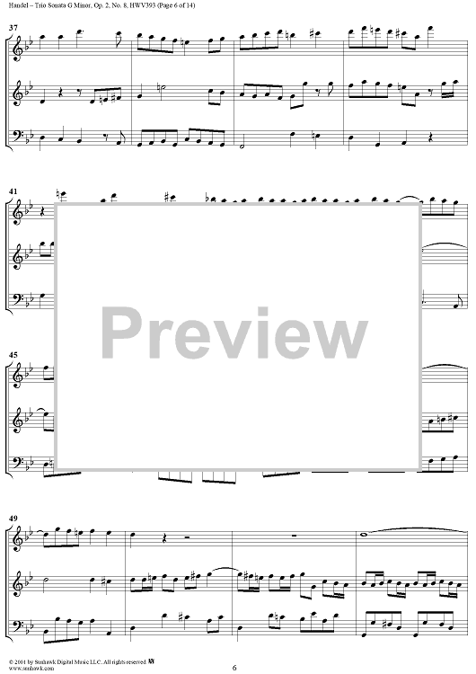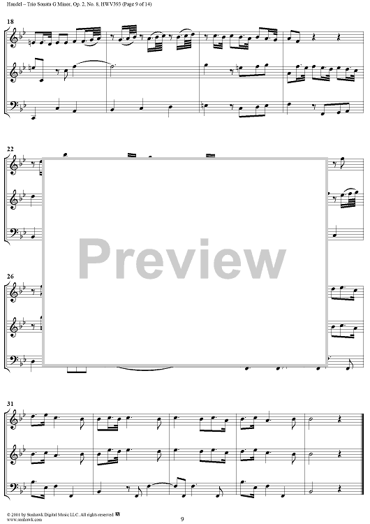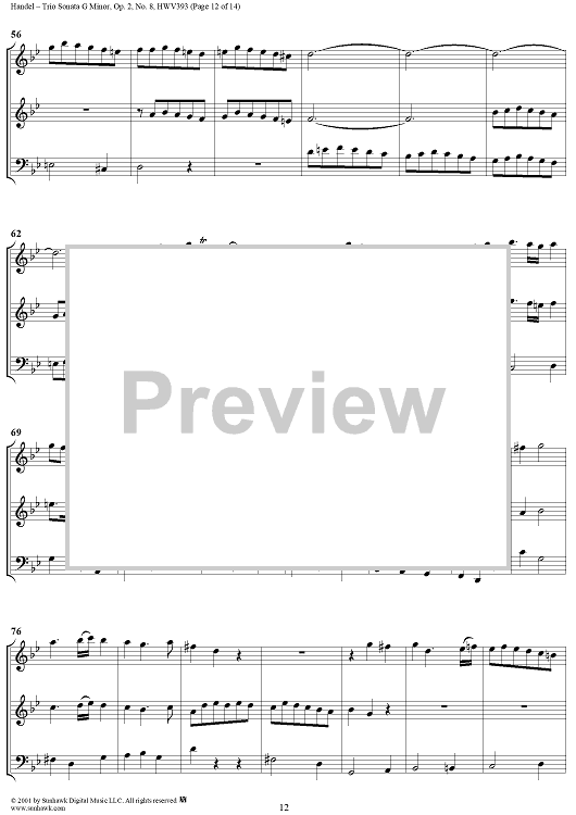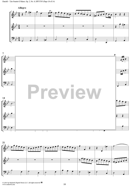 Digital Sheet Music for Trio Sonata no. 2 in G minor - op. 2, no. 8 (HWV393) by George Frideric Handel scored for Trio Sonata; id:267657