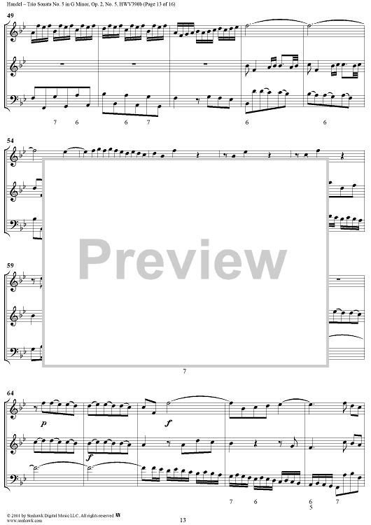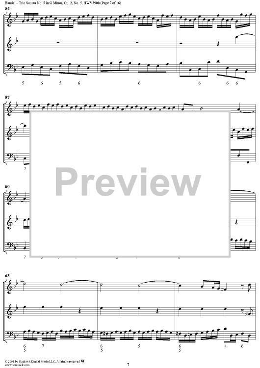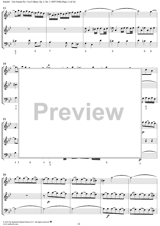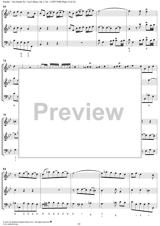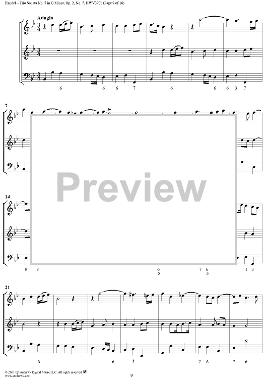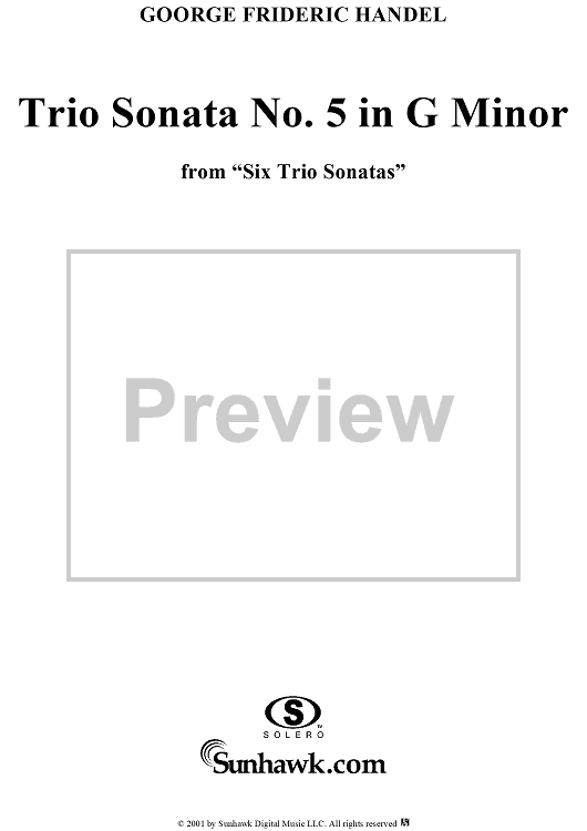 Digital Sheet Music for Trio Sonata no. 5 in G minor - op. 2, no. 5 (HWV390b) by George Frideric Handel scored for Trio Sonata; id:267655