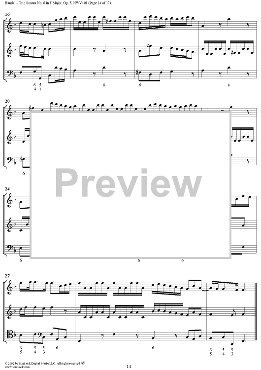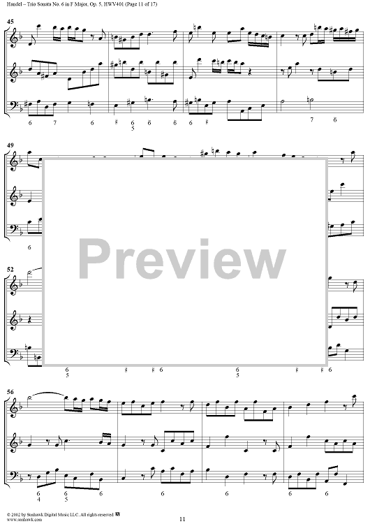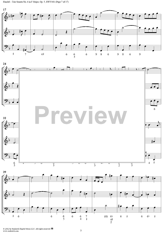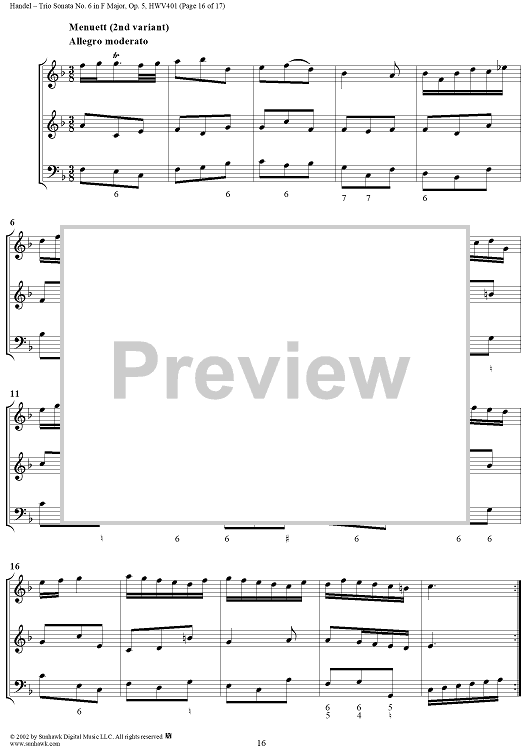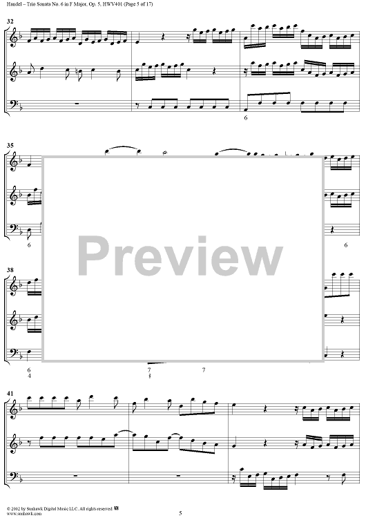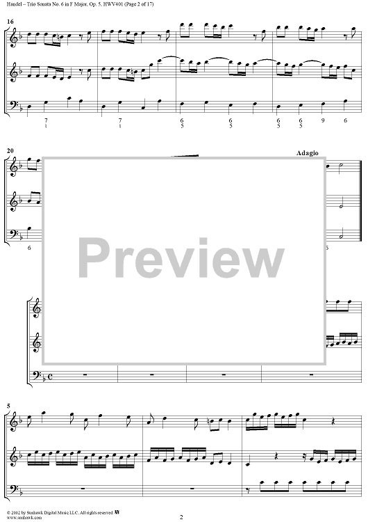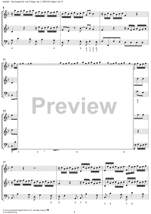 Digital Sheet Music for Trio Sonata no. 6 in F major - op. 5/6 (HWV401) by George Frideric Handel scored for Trio Sonata; id:267740