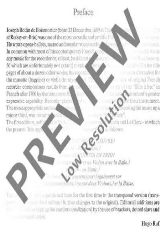 Digital Sheet Music for Triosonata Bb major by Joseph Bodin de Boismortier scored for Treble Recorder, Violin (oboe) Or 2 Treble Recorders And Basso Continuo; id:476183
