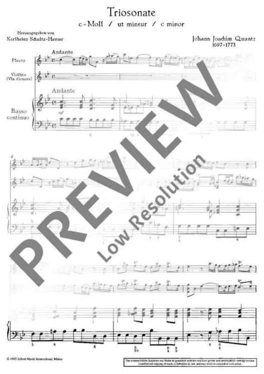 Digital Sheet Music for Triosonata C minor - Set of Parts by Johann Joachim Quantz scored for Flute, Violin Or Viola D'amore (also Flutes, Oboe, 2 Flutes, 2 Violins) And Basso Continuo; id:471092