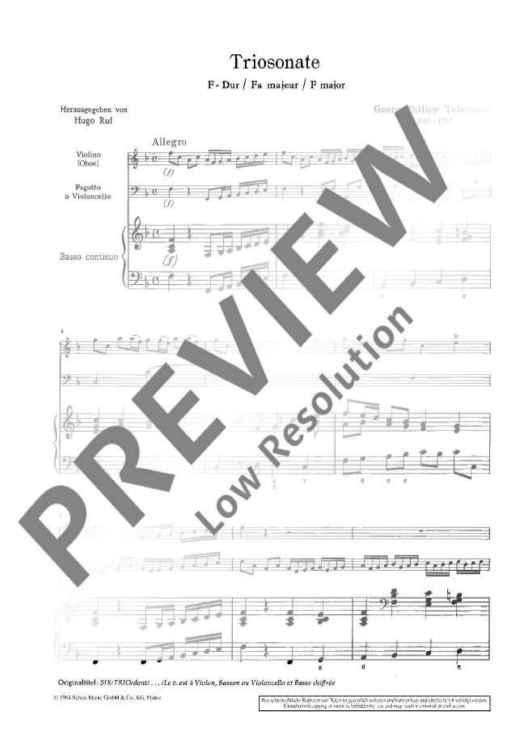 Digital Sheet Music for Triosonata F Major by Georg Philipp Telemann scored for Violin (oboe), Cello (bassoon) And Basso Continuo; id:471114