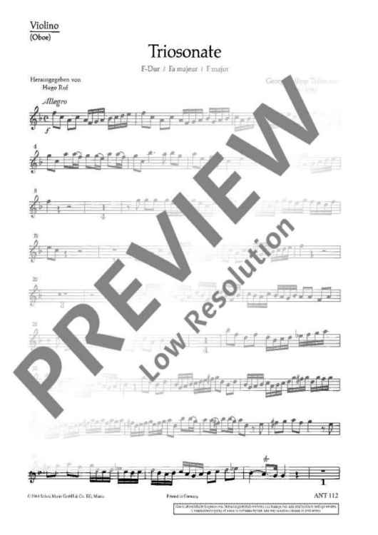 "Triosonata F Major" Sheet Music by Georg Philipp Telemann