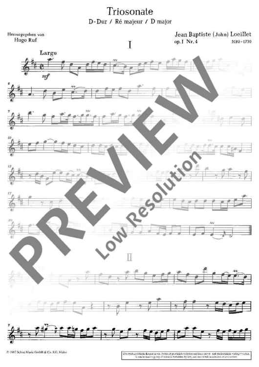 "Triosonata in D major" Sheet Music by Jean Baptiste Loeillet