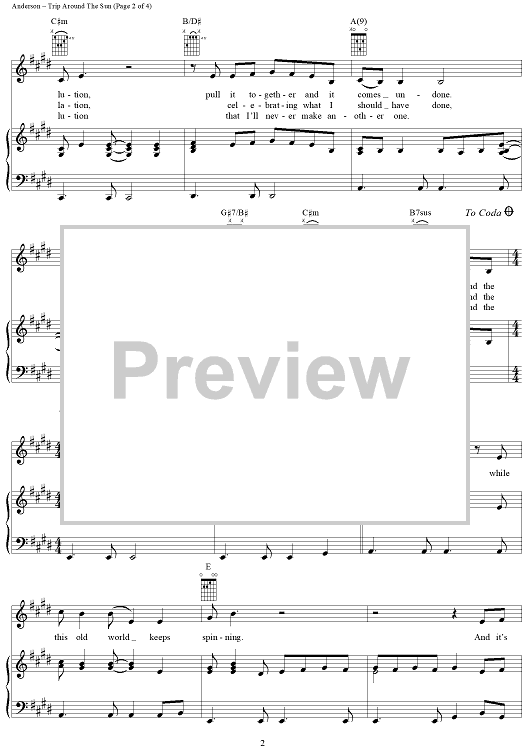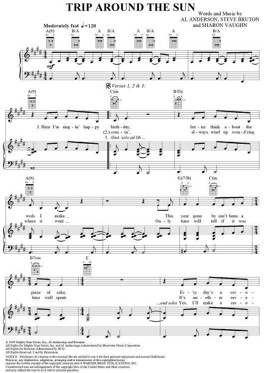 Digital Sheet Music for Trip Around The Sun by Al Anderson, Martina McBride, Sharon Vaughn, Jimmy Buffett, Stephen Bruton scored for Piano/Vocal/Chords; id:308220