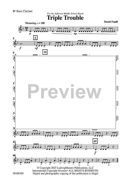Digital Sheet Music for Triple Trouble - Bb Bass Clarinet by Daniel Sault scored for Concert Band; id:509402