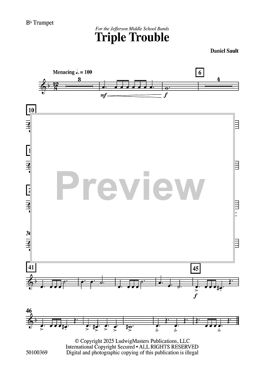 Digital Sheet Music for Triple Trouble - Bb Trumpet by Daniel Sault scored for Concert Band; id:509406